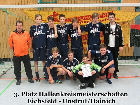 Im ersten Gruppenspiel trafen die Schützlinge von Klaus Schiller und Sven Harnisch auf die erste Unbekannte - die SG Arenshausden/Gerbershausen. Mit Mühe wurde der Einstieg in das Turnier mit einem 1:0-Sieg gegen spielerisch unterlegene Eichsfelder gemeistert. Leider vermochte es das Team nicht, seine eigenen Fähigkeiten zur Entfaltung zu bringen und passte sich dem Spiel des Gegners an. Danach mussten unsere Spieler mehr als eine Stunde als Zuschauer das Turnier verfolgen, um endlich das zweite Gruppenspiel gegen Bad Tennstedt zu bestreiten. Trotzdem kann die lange Pause nicht als Ausrede für eine schlechte Leistung dienen. Besonders das Verständnis für das Zusammenspiel in der Halle ließ stark zu wünschen übrig und so konnte man von Glück reden, dass Torhüter Clemens Schütz in letzter Sekunde ein mageres 0:0 über die Zeit retten konnte. Im letzten Spiel präsentierten sich die Preußen-Spieler endlich in einer besseren Verfassung, was auch bitter nötig war, denn der Gegner SV Einheit Worbis entpuppte sich in den vorangegangenen Spielen als heimlicher Favorit auf den Meistertitel. Doch nach schnellem Rückstand kämpften sich die Preußen zurück in die Partie und mussten lediglich der schlechten Chancenauswertung geschuldet die erste Niederlage einstecken. Durch ein Remis zwischen Arenshausen/Gerbershausen und Bad Tennstedt rückten wir so etwas schmeichelhaft mit 4 Punkten und einem Torverhältnis von 1:1 ins Halbfinale, wo die SG Niederorschel/Deuna als nächster „Nobody“ auf die Mannschaft wartete. Auch hier verfielen die Jungs wieder in alte spielerische Verhaltensmuster und mussten gegen einen entschlossen auftretenden Kontrahenten die Segel streichen. Doch Bange machen galt nicht, denn die Qualifikation für die Regionalmeisterschaften stand im Spiel im Platz 3 noch aus, wo man abermals die Worbiser vor der Brust hatte, welche völlig überraschend im anderen Halbfinale gegen Heyerode mit 1:3 das Nachsehen hatten. Dabei zeigten die C-Junioren endlich was in ihnen steckt und bezwangen die spielerisch besser auftretenden Wipperstädter in einem hitzigen Spiel mit 2:1.