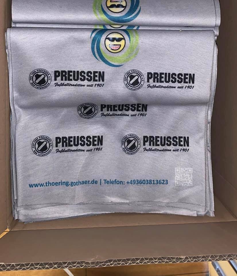 Am heutigen Montag beginnt unser erstes Preußen-Online-Training inklusive Mitmachgeschenk. Um 16 Uhr starten die Web-Trainingseinheiten unserer G- bis D-Junioren, im Anschluss um 16.45 Uhr kommen die C- bis A-Junioren in den Genuss, unter der Leitung unserer Verbandsliga-Spieler Thilo Kleinert und Philipp Franke wieder einmal ballorientiert zu trainieren. Und wir haben eine zusätzliche Motivation. Jeder der dabei ist, kann sich einen Preußen-Halsschlauch abholen, sponsored by Gothaer Versicherung Mario Thöring. Und sie sind schon angeliefert, so dass die Halswärmer schon ab morgen im Büro in der Karlstraße 5 in Bad Langensalza abgeholt werden können. Wir freuen uns, mit Euch ab heute zu trainieren!