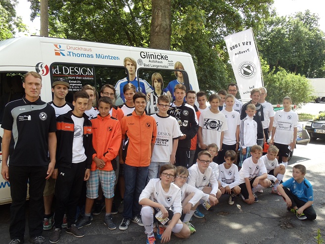 Seit Freitag begeht die Stadt Bad Langensalza das 202. Brunnenfest und auch der FSV Preußen ist wieder dabei. Beim traditionellen Brunnenfest-Umzug am Sonntag beteiligten sich 3 Jugendmannschaften des Vereins. Mit Preußen-Bus und geschmückten Anhänger zogen die Nachwuchsspieler durch die Stadt. Dabei stand der Auftritt in diesem Jahr unter dem Motto der Fußball-Weltmeisterschaft in Brasilien. Am 4. und 5. Juli wird der FSV Preußen im Jugendzentrum XXL die Viertelfinal-Spiele im Public Viewing übertragen und zudem einen Wettbewerb an einer Torschuss-Geschwindigkeits-Messanlage durchführen. Genauere Infos gibt’s demnächst an dieser Stelle.