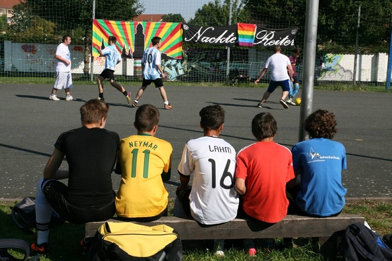 Am Samstag veranstalteten Nackte Reiter nach 2013 ihr zweites Unser Ball ist bunt-Turnier, das in diesem Jahr unter dem Motto „Vor dem Ball sind alle gleich“ gefördert und auch durch den FSV Preußen Bad Langensalza unterstützt wurde. Unter den 10 Mannschaften fanden sich viele Jugendspieler und –trainer, sowie einige Akteure der Männerteams des Vereins, die nicht nur am Streetsoccer-Turnier teilnahmen, sondern sich auch an der Podiumsdiskussion von und mit Marcus Urban beteiligten. Urban berichtete über sein Leben als homosexueller Profifußballer und Homophobie im Fußball. Wir als Verein sprechen uns gegen jede Form der Diskriminierung in der Gesellschaft, im Sport und in unserem Verein aus.