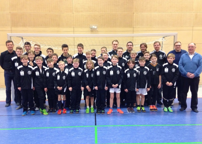 Im Rahmen des Trainingslagers in den Winterferien wurden die Nachwuchsteams des FSV Preußen Bad Langensalza komplett mit neuen Trainingsanzügen ausgestattet. Alle 9 Jugendmannschaften von den G- bis zu den A-Junioren erhielten die entsprechenden Materialien in den schwarz-weißen Vereinsfarben und werden den Verein ab sofort einheitlich präsentieren. Die Außendarstellung und die finanzielle Unterstützung des Nachwuchskonzepts des Vereins ist den seit vielen Jahren schon den Verein unterstützenden Sponsoren ein besonderes Anliegen. Bei der Übergabe waren Alexander Ernst, Geschäftsführer der VR-Immobilien GmbH in Bad Langensalza und Tobias Stephan, Filialleiter der VR-Bank Westthüringen, anwesend. Sie übernahmen gemeinschaftlich die Kosten für die insgesamt 150 Trainingsanzüge, auf welchen sich die Sponsoren mit ihren jeweiligen Logos präsentieren. Der Vorstand des FSV Preußen bedankt sich stellvertretend für die Übungsleiter und Jugendspieler bei Herrn Ernst und Herrn Stephan für die tolle Unterstützung des Fußballnachwuchses in Bad Langensalza und wünscht sich eine weiterhin erfolgreiche Partnerschaft!